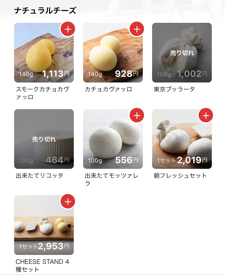 フレッシュ&ハンドメイドできたてチーズ「CHEESE STAND」購入画面